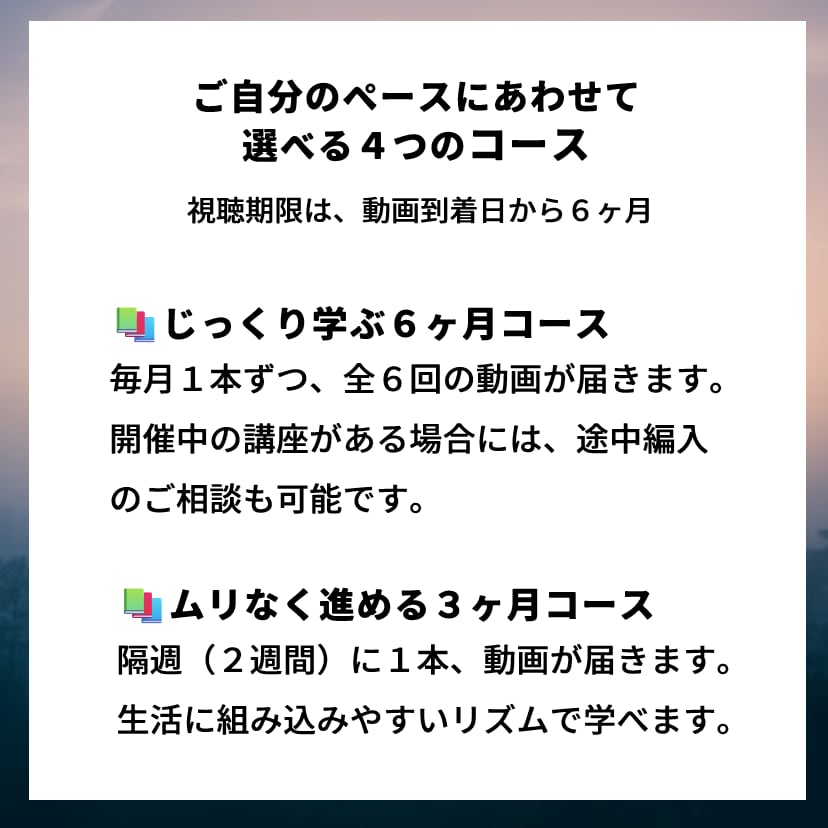 ◆全6回の講座を隔週(2週間に1回)ごとにお届けします。